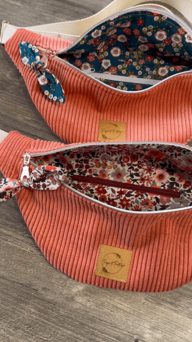 Ce sac est réalisé avec du tissu en velours côtelé.