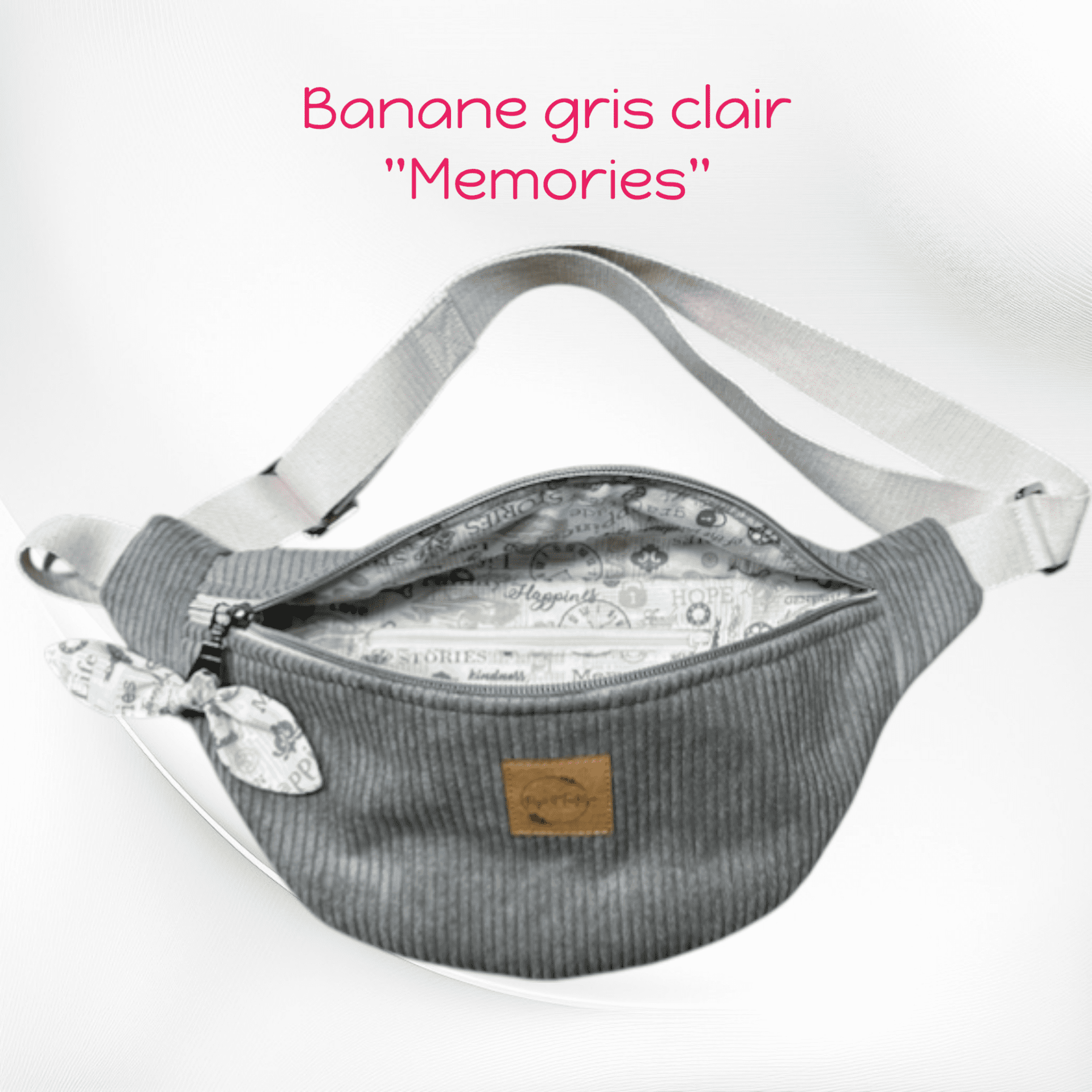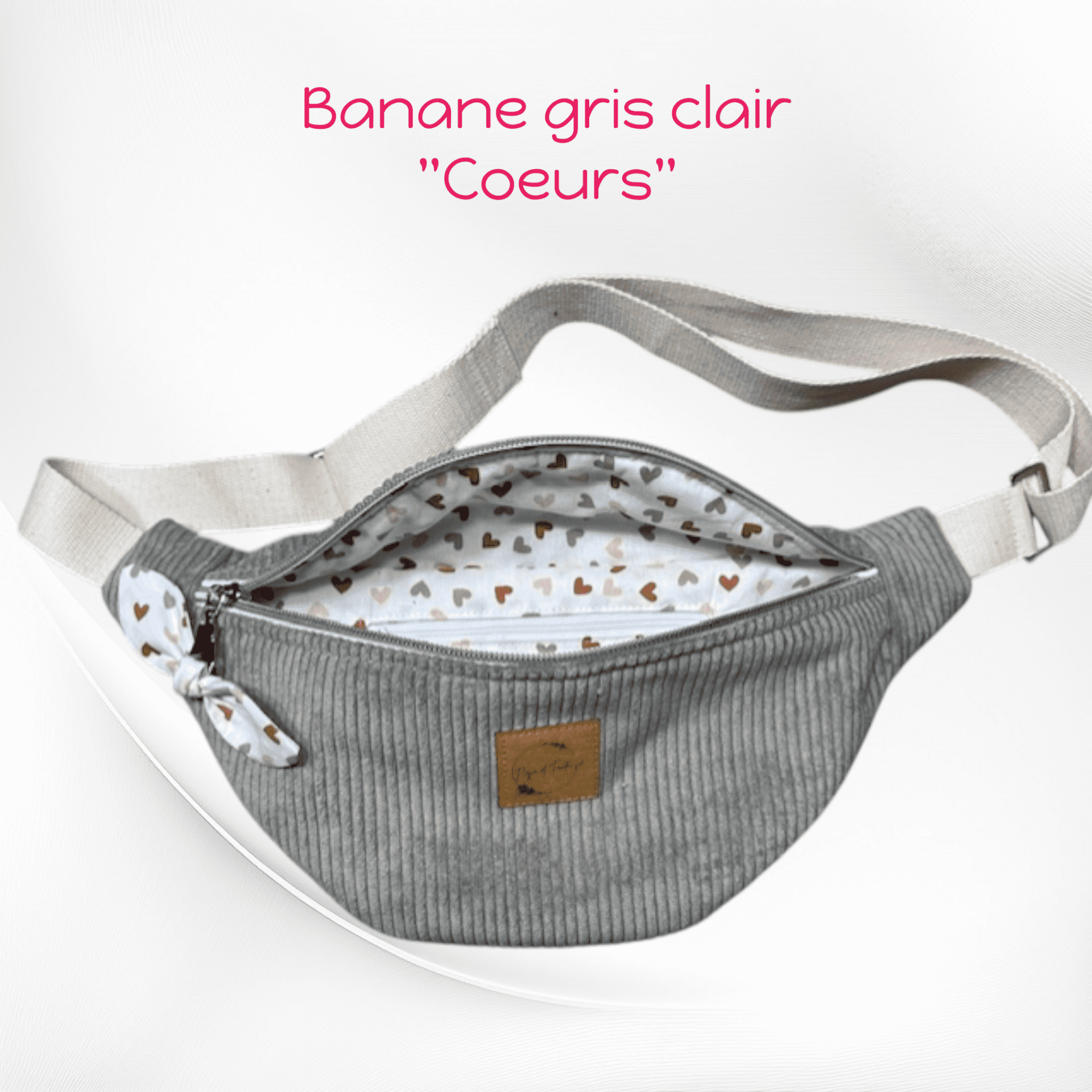 Un lavage en machine est possible à 30° max. Mettre le sac banane dans un filet et lancer un cycle court. Le petit nœud doit être enlevé avant le lavage en machine et lavé à la main.