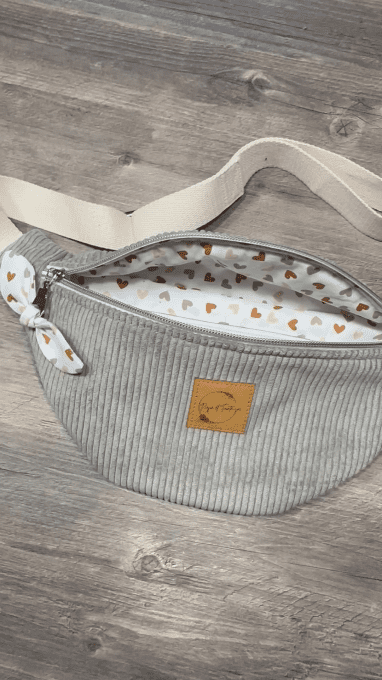 Ce sac est réalisé avec du tissu en velours côtelé.
