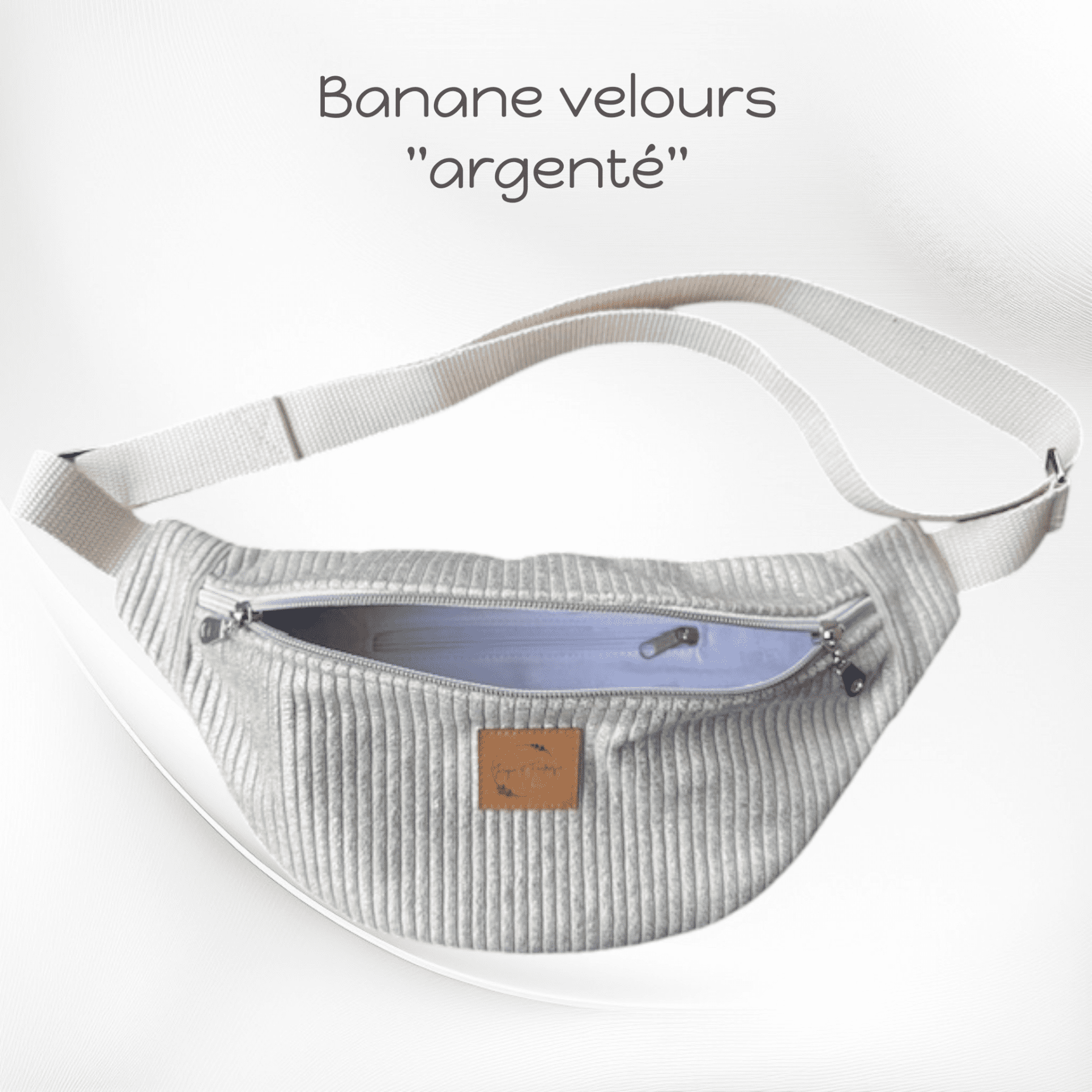Ce sac est réalisé avec du tissu en velours côtelé imprimé, doré ou argenté.